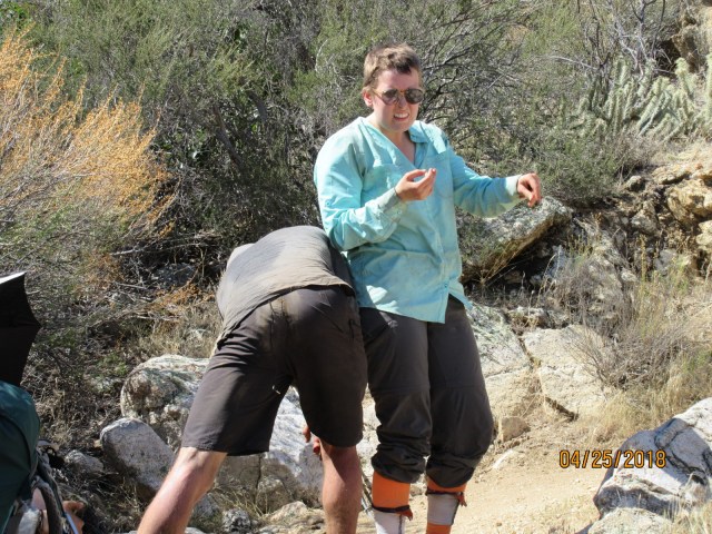 Speaking of injuries, I received a trail name (a tradition on long hikes where you get bequeathed a name). On one of the hottest days, my group stopped in a shady-ish area to have a snack. I was the last one to sit and felt a sting in my finger. Looking down, there was a cactus spine sticking out of it. After I pulled it out, I became aware of another pain and yelled “Do I have a cactus in my ass?!” I did. I’d sat on a small cactus-like thing, which a newly very close friend had to help get off (thanks, Eric!) Now I’m known as Cactass.