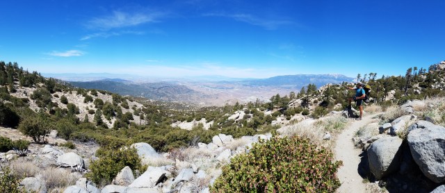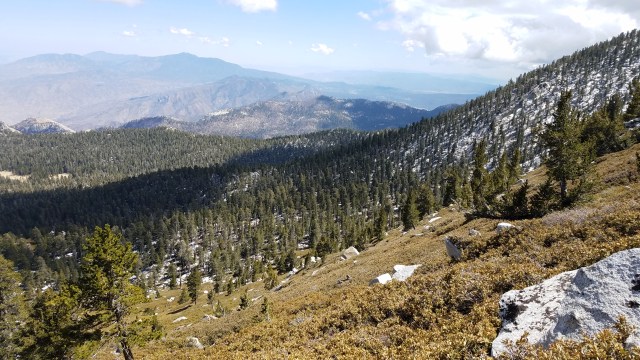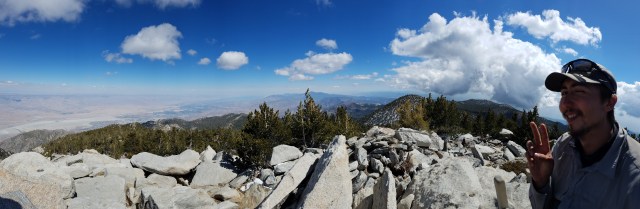 Gobuke (Addison), Florian, Johanna, and I left Idyllwild and began to climb through a pine forest, very eventually summitting San Jacinto, a 10,896 foot mountain. It took a while to get there, the elevation slowing our progress, either because of elevation change or just that it was steep. Probably both. The summit was incredible. I could see for miles and miles.