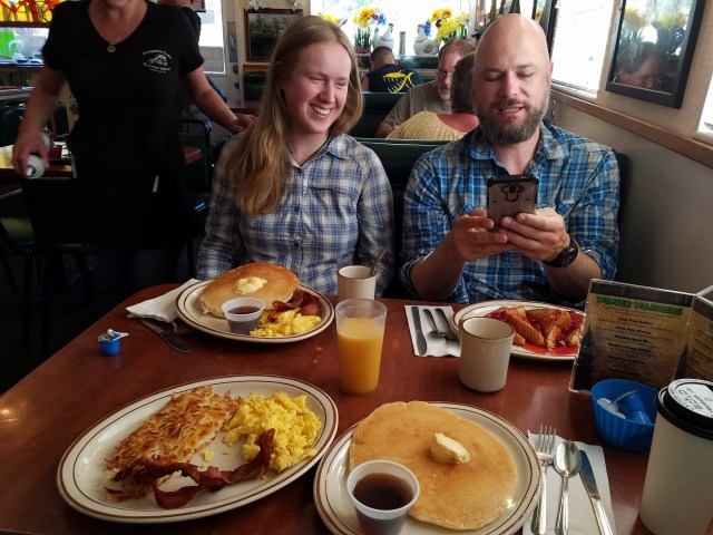 After eating, we did some town chores, going to the post office and hardware store, finding a place to stay, and figuring out and buying food for the next leg. That day and the next, we took full advantage of what Wrightwood had to offer, including 5 cent margaritas, $1.50 tacos, pastries for first breakfast and pancakes for second breakfast, karaoke, and beer. That had actually been my first time doing karaoke. There was a guy at that bar who was being kind of pushy and annoying, wanting to dance with Tinkle and I again and again. That was the only negative experience I’ve had from any person in town. Even that was mitigated by the Hagrid-looking karaoke host who dedicated and sang a song to the guy called “The Asshole Song.” That was pretty cool.