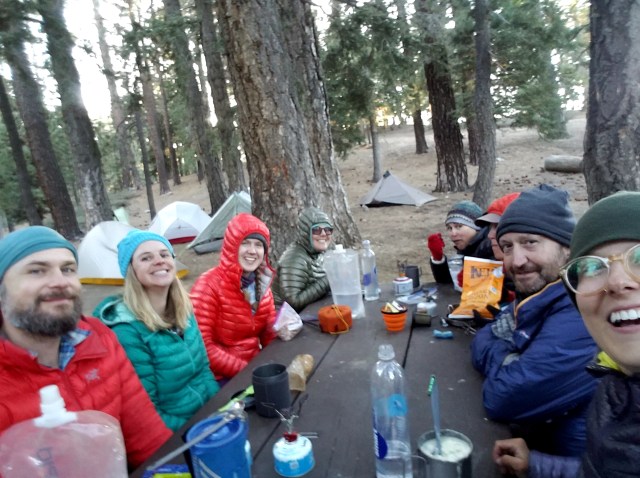 Back to Wrightwood, we left after another good breakfast and made our way up Mount Baden-Powell. Because most towns and highways where you get to towns aren’t on the tops of the mountains, there’s often a big climb on the trail right after a town, when your bag is the heaviest, with all the food you’ll carry for the next stretch. It was a difficult climb, but at the top, there was a dog! Worth it. There was also a tree, named Wally, near the summit that was estimated 1500 years old. That night, I celebrated by making a truly awful dumpling meal. It was terrible mostly because of user error- but for real, though, making homemade dumplings on trail is not a user-friendly task.