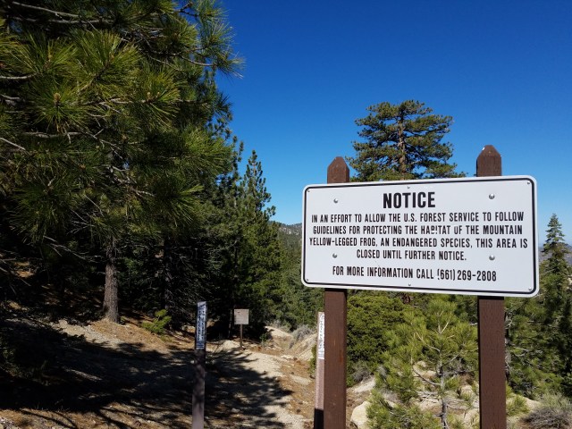 Most closures on the PCT are because of fire or fire damage. The next day, though, we had a detour around a closure for frogs. Specifically an endangered yellow legged frog. Because we’re so nature-oriented, we even road walked past a huge climb, just in case there were any frogs hanging out there, too. On the crest, safety is best. 😉