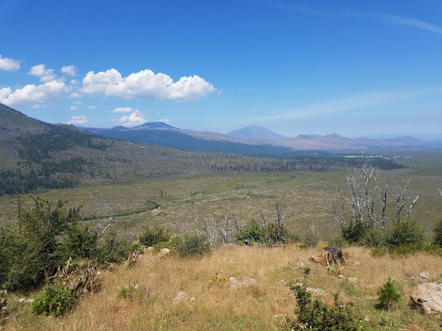 We left the cave and started on the Hat Creek Rim, a semi-flat section of trail that I thought we’d breeze through. The day got hotter and hotter and the sun beat down overhead. There was no tree cover for miles and I started to get a headache. We reached the next water source, which was 400 vertical feet down from the trail, accessible by a steep path strewn with boulders. My mood was not improved by this development. Water collected, I climbed out of the canyon and we ate lunch. Two miles later, we found trail magic! If there was ever a day I appreciated it more, I don’t know. There was soda and water in coolers, cookies, oranges, bananas, and hummus, of all things. There was still six more miles until the next water source, so we had to scoot. The rest of that afternoon was also not enjoyable. I popped some ibuprofen and got some signal, so I called a friend to distract me. By the end of the call, the ibuprofen (or Vitamin I, as hikers call it) had kicked in. The trail brought me closer to the actual rim and I got some beautiful views of Mount Shasta in the distance. To make the day amazing, when we got to the water cache, a trail angel and thru-hiker alum named Coppertone was there, offering us root beer floats and cookies! This was the first time I’d seen him, but he was trail famous. He took a small RV and stopped at places along the trail, keeping with the “bubble” of hikers, setting up a circle of camp chairs, and taking his dirt bike in and out of town to restock on root beer, cream soda, ice cream, and cookies for hikers. A true angel, bringing root beer floats to the reeking masses of hiker trash.