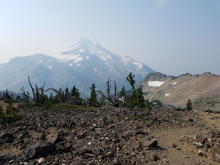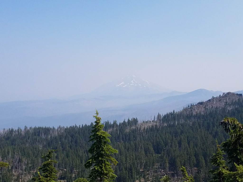 My last in the trio of animal encounters was with the ubiquitous chipmunk. The next day, I skirted around Mount Jefferson through open, flat fields and up a ridge. I arrived at Olallie Lake Resort, bought myself two sodas at the store, parked my stuff on a picnic table, and went off to make use of the pit toilets. While I was in there, chipmunks had been trying to get into my stuff, as the French guy who had been scaring them off told me. I thanked him, as he probably prevented my pack from getting holes chewed into it. I took advantage of the water pumps, so I didn’t have to filter for dinner that night! I finished the day camped next to Maddie, a young hiker just out of high school. We were both looking forward to reaching Mount Hood in the next couple days, not to mention the beginning of Washington!