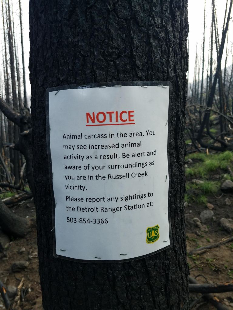 The way hikers know where water sources will be on trail is called the PCT water report, an excel sheet that a trail-famous hiker named Halfmile maintains with reports from hikers. Ahead of this, I’d read that there was a dead horse in one of the sources, Russell Creek. Leading up to the creek, the area that had been recently burned, so that there was still ash visible on the ground. It felt apocalyptic and the signs that warned of increased animal activity because of a carcass didn’t help. As the trail descended to the creek, I saw what looked to be a white boulder with moss, until I noticed the legs. It was a bit shocking. The water crossing didn’t feel the safest to begin with and that didn’t lend me any confidence. I prepared to cross, unhooking my hip belt and looping my emergency beacon to my pants. I had to take a few lunging steps across, but I landed all of them. For the rest of the day, I couldn’t get the thought of losing my balance and falling into the horse out of my mind. I later heard that the horse had been a part of a search and rescue operation and had to be put down after falling into the creek. I hated to think of what the owner felt, or anyone else who was involved in the situation. That definitely stuck with me in the days after.